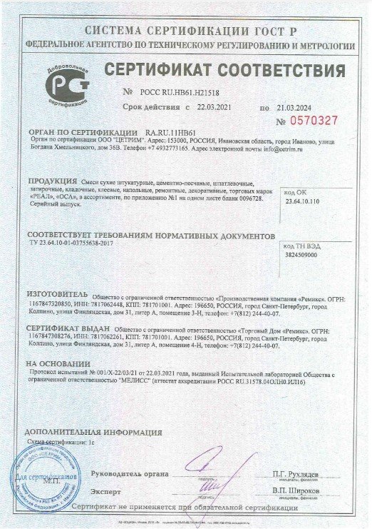 Продажа сухих смесей в Рощино